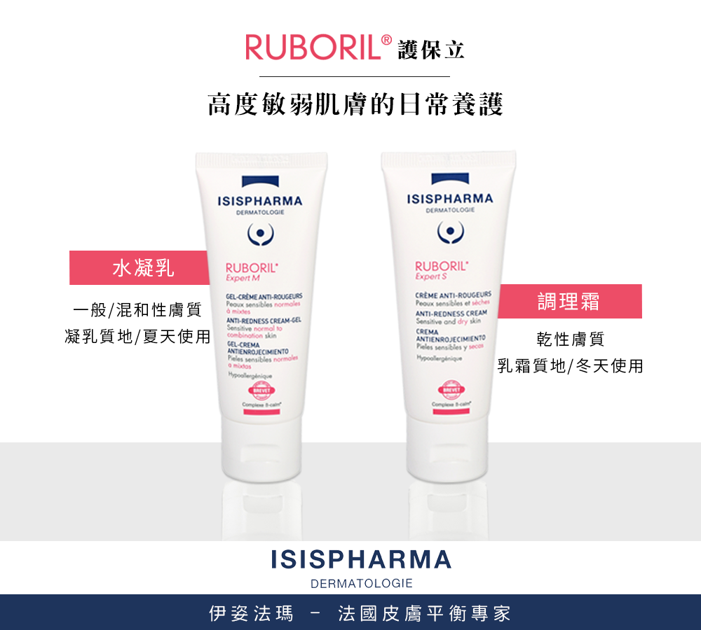 Ruboril Expert M 修護潤膚霜 有助於抵抗泛紅和可見小血管。
